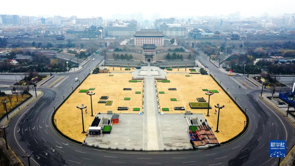 12月23日拍攝的西安永寧門外盤道(無人機(jī)照片)。新華社記者 劉瀟 攝