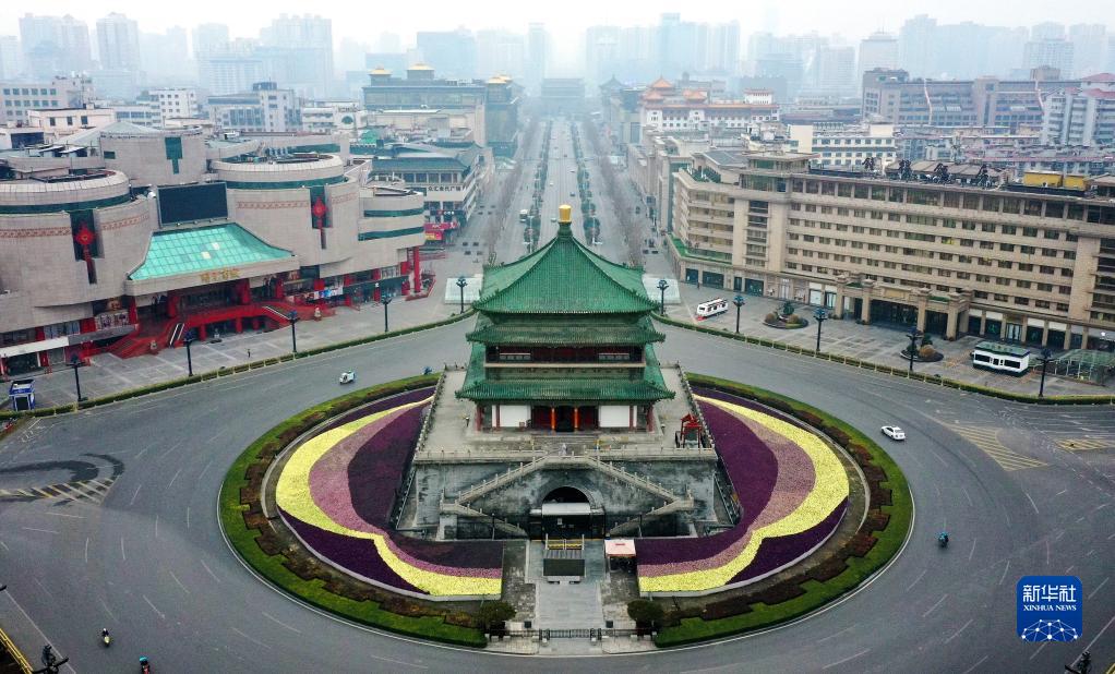 12月23日拍攝的西安鐘樓(無人機(jī)照片)。新華社記者 劉瀟 攝