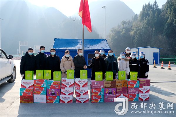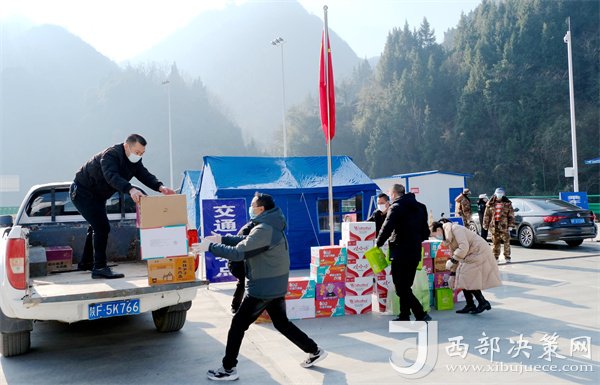 西部決策網訊12月29日,鎮(zhèn)巴縣漢中芳悅茶業(yè)科技有限公司負責人帶上食品和飲品等物資,慰問奮戰(zhàn)在鎮(zhèn)巴縣小渡壩高速出入口疫情防控檢查一線的工作人員。