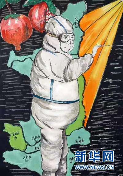 1月2日,西安市鄠邑區(qū)甘亭中心學(xué)校的孩子們用最自己的方式宣傳居家防疫知識,用手中的畫筆表達(dá)他們對抗疫英雄的贊美,為抗疫一線的英雄加油!為西安加油?。◤埶妓?趙影超 王展榮)