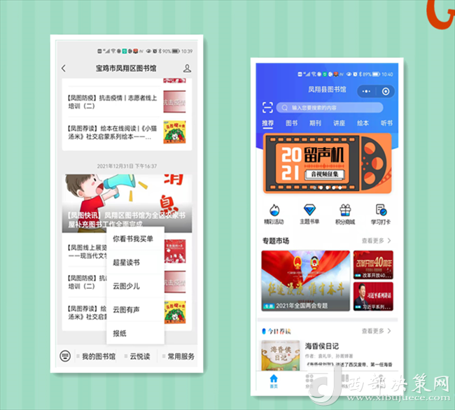 閉館不閉網,線上服務不打烊。自12月23日閉館以來,區(qū)圖書館整合各類數字資源,免費提供豐富的線上服務,滿足不同年齡群體讀者的閱讀需求,更新“超星閱讀”APP,電子書、數字期刊、講座、繪本、聽書等海量資源為讀者提供高質量的閱讀福利。利用“陜西數字文化網”“鳳翔區(qū)圖書館官方網站”“鳳翔區(qū)圖書館”公眾微信號,線上開設【鳳圖戰(zhàn)疫】【鳳圖薦讀】【紅色故事繪】【館員姐姐講故事】【館員有聲薦讀】【鳳圖文苑】等閱讀服務專欄,提供疫情防控知識、繪本閱讀、親子故事講讀、線上展覽等,讀者通過關注“寶雞市鳳翔區(qū)圖書館”公眾號、網站享受24小時線上服務,通過鳳翔區(qū)圖書館總分館群,將這些優(yōu)質數字資源向基層分館輸送,讓廣大讀者暢享“云端閱讀”。
