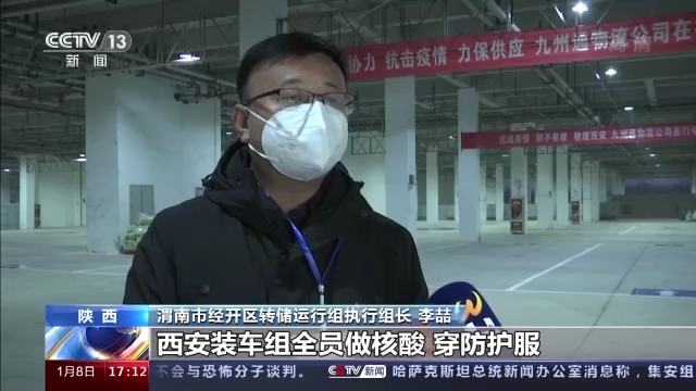 渭南市經(jīng)開區(qū)轉(zhuǎn)儲運行組執(zhí)行組長 李喆:專車通道、裝卸組人員是分離的,西安這個裝車組全員做核酸、穿防護服。西安車輛過來,駕駛員不下車,全程貼封條,24小時不間斷兩班倒。