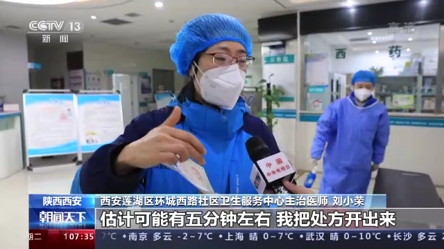 西安市蓮湖區(qū)環(huán)城西路社區(qū)衛(wèi)生服務(wù)中心主任 趙辛斌:門診人次是61個人,能到咱這兒現(xiàn)場來開藥的13個人,剩下48個人全部是咱們的大夫開了藥以后送到家里去的。