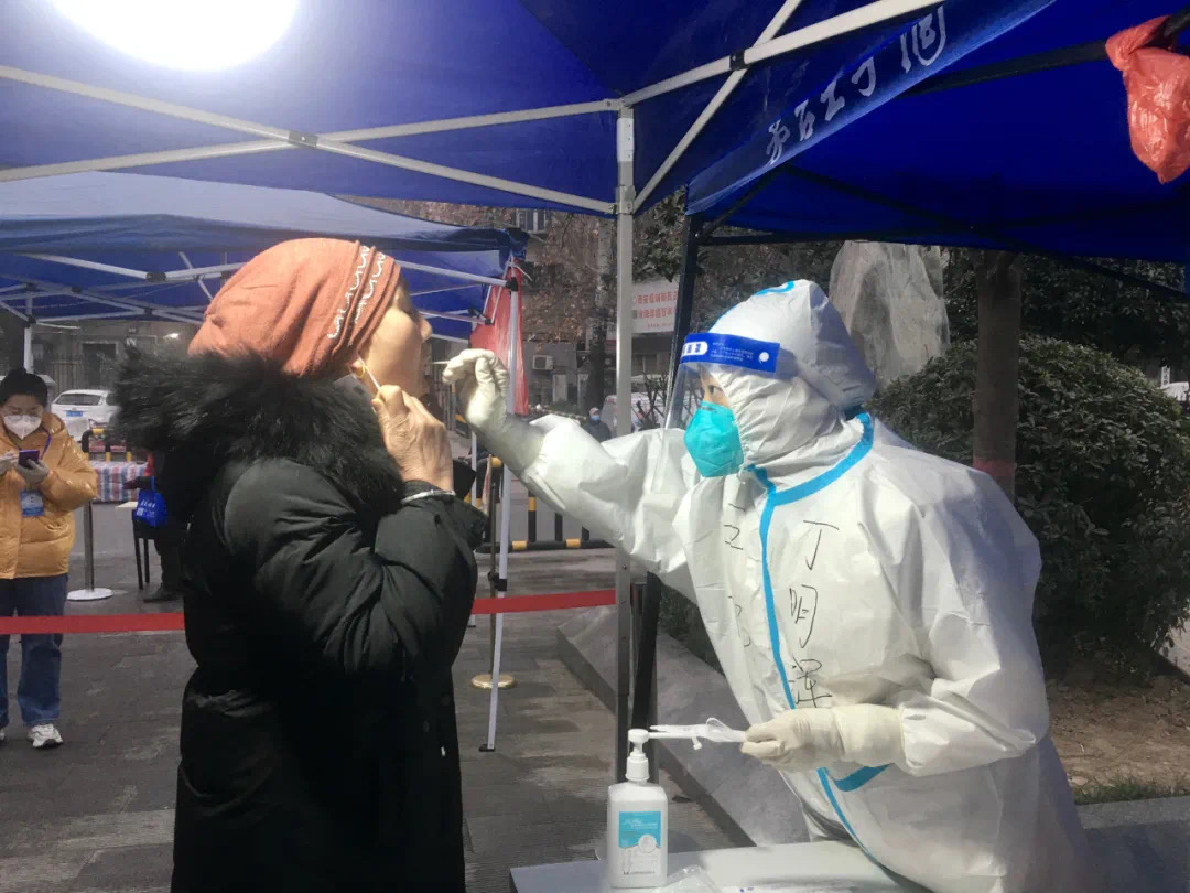 第二次婚期定于12月18日,14日丁明輝在科室交接完手頭工作,開始休假籌備婚禮事宜。晚7點回到家就聽說長安大學(xué)出現(xiàn)疫情,整個學(xué)校連夜進行核酸檢測。她深知,兇猛的疫情此時更需要醫(yī)務(wù)工作者,需要自己。第二天她在社區(qū)完成自己的核酸檢測,得到陰性報告后,遂結(jié)束休假返回醫(yī)院上班,此后服從醫(yī)院派遣多次外出執(zhí)行核酸采集任務(wù),并于25日起開始留住醫(yī)院準(zhǔn)備參加定點醫(yī)院支援。后因任務(wù)調(diào)整,2022年1月2日晚來到回民街市五院第10核酸采樣隊,開始和同事一起執(zhí)行廟后街社區(qū)及市區(qū)多處核酸采集工作至今。
