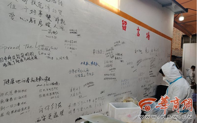 由外到內(nèi),愛(ài)心人士捐贈(zèng)的物資經(jīng)由這32名志愿者擇、洗、切、炒、裝盒和送餐,在簡(jiǎn)簡(jiǎn)單單地流水線上的完成了質(zhì)的轉(zhuǎn)變和愛(ài)心的傳遞,德善廚房成了“力量的中轉(zhuǎn)站”。一位臺(tái)灣同胞捐贈(zèng)了1萬(wàn)元;一位武漢微光救援隊(duì)隊(duì)員4天兩趟開(kāi)車往返西安,送來(lái)物資;一名執(zhí)行任務(wù)還能出入廚具市場(chǎng)的西安警官,聯(lián)合同事捐贈(zèng)了一個(gè)猛火大灶……諸如此類,不勝枚舉。