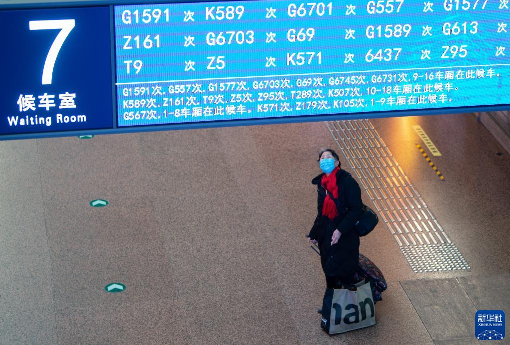 1月17日,一位旅客在北京西站候車室外查看屏幕上的車次信息。新華社記者 陳鐘昊 攝