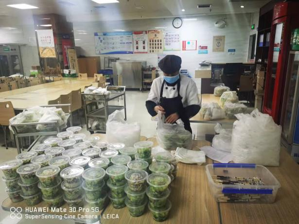 同時(shí),醫(yī)院還成立志愿者送餐服務(wù)隊(duì),為住院患者及陪人提供送餐服務(wù)。餐廳再次完善了送餐流程,明確了餐箱消毒及工作人員防護(hù)要求,讓住院患者享受營養(yǎng)健康又熱乎乎的飯菜。隊(duì)員中有行政后勤人員、醫(yī)生、護(hù)士,他們與餐廳密切合作,確保準(zhǔn)時(shí)送達(dá)、數(shù)量準(zhǔn)確,為了保證飯菜的溫度,他們加快速度,提高效率,送餐隊(duì)員們練就了熟練的推車技術(shù),各個(gè)都成了“推車高手”,每一餐一千多份餐食移交完畢,隊(duì)員們笑著說“腰都快直不起來了。”但他們沒有一個(gè)人叫苦叫累,都說“看到患者吃著熱乎的飯菜,我們覺得每天都是值得的!能為患者服務(wù)好,便是我們對西安抗疫做的最大貢獻(xiàn)。”