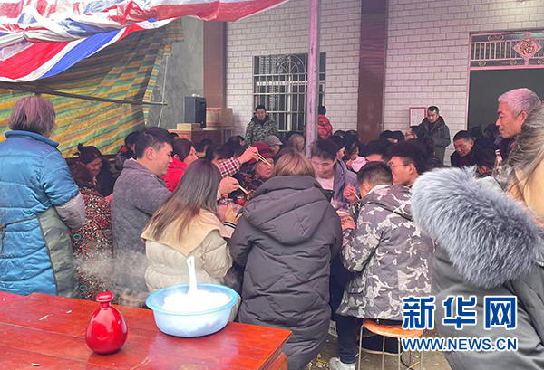 2月7日,當(dāng)?shù)剞r(nóng)歷虎年的第一場壩壩宴。新華網(wǎng)發(fā)(譚俊 攝)