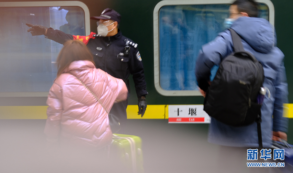 “請大家看好隨身物品,依次上車,不要擁擠。”2月7日是節(jié)后返程客流高峰時(shí)刻,當(dāng)天11:20許,在湖北十堰火車站站臺,一位聲音洪亮、神采奕奕的乘警來回走在列車旁,一邊維護(hù)乘車秩序,一邊提醒乘客有序上車。