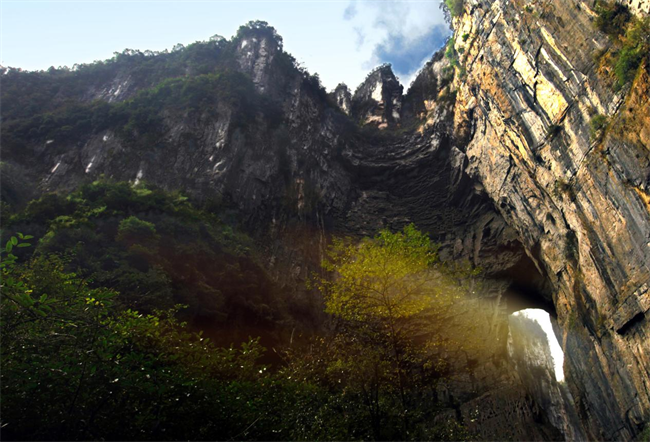 夕陽(yáng)下神秘幽深的神鷹天坑