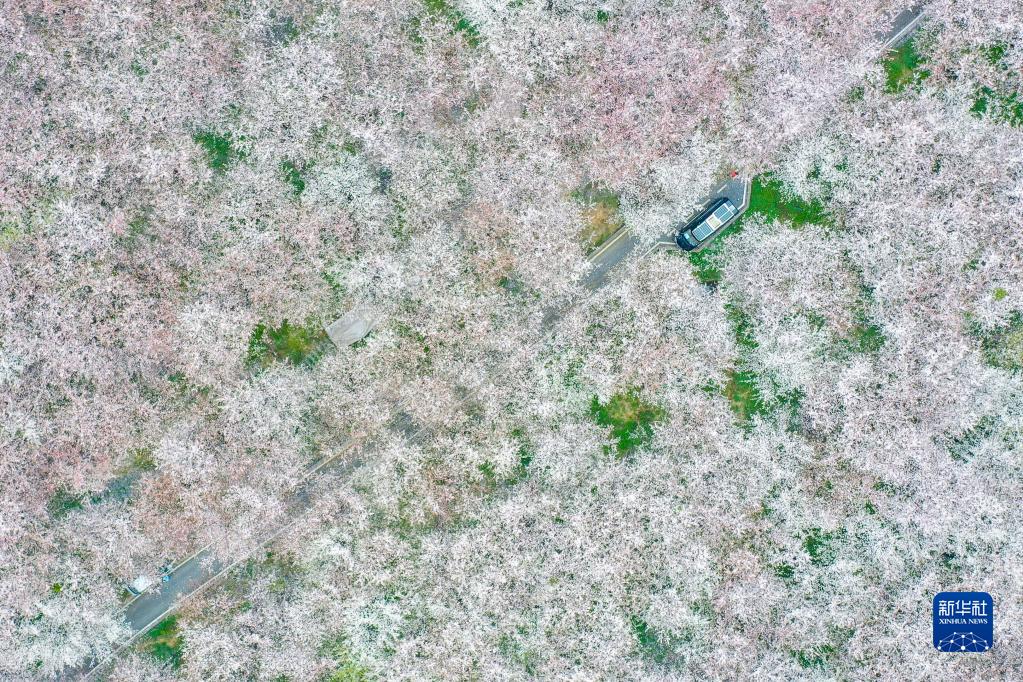 這是3月17日拍攝的貴安新區(qū)櫻花園(無人機(jī)照片)?!⌒氯A社記者 歐東衢 攝
