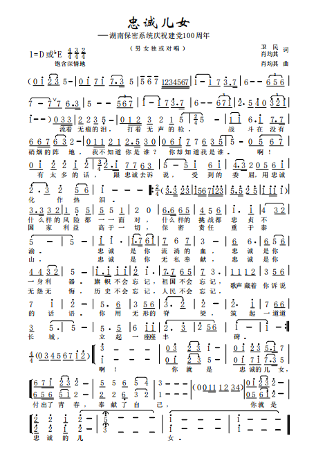 慶祝建黨百年獲獎(jiǎng)歌曲作品選集——《忠誠兒女》詞曲。