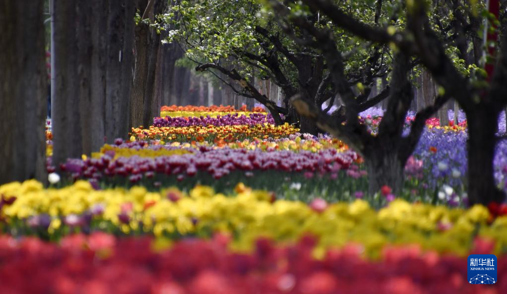 大興區(qū)北臧村鎮(zhèn)永定河畔的綠色港灣內(nèi)盛開(kāi)的郁金香(4月19日攝)。