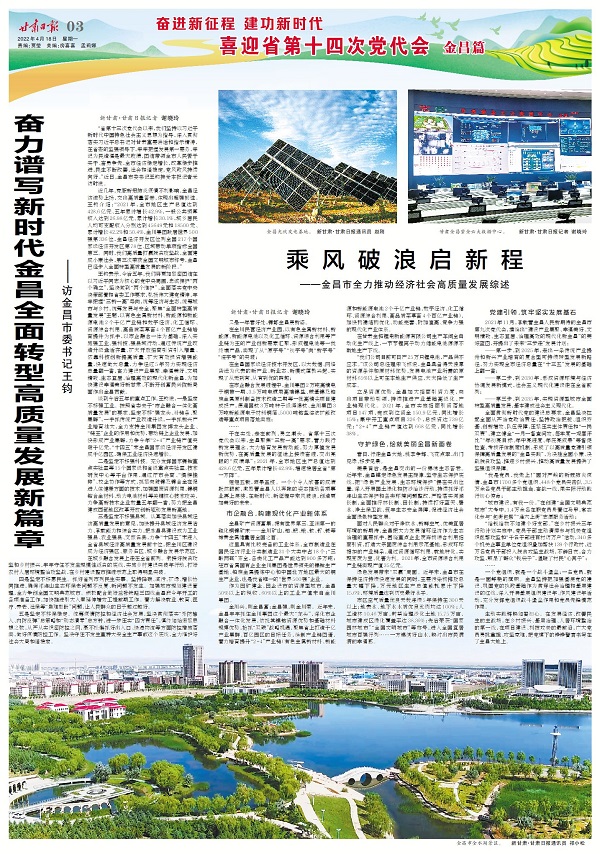 近幾年,克服新冠肺炎疫情不利影響,金昌經(jīng)濟(jì)逆勢上揚(yáng),交出高質(zhì)量答卷,體現(xiàn)出超強(qiáng)韌性。王鈞介紹:“2021年,全市地區(qū)生產(chǎn)總值達(dá)到428.6億元、五年累計增長42.9%,一般公共預(yù)算收入達(dá)到26.98億元、累計增長30.1%,城鄉(xiāng)居民人均可支配收入分別達(dá)到45649元和18500元、累計增長42.2%和50.4%,金川集團(tuán)躍居世界500強(qiáng)第336位,金昌經(jīng)濟(jì)開發(fā)區(qū)位列全國217個國家級經(jīng)濟(jì)開發(fā)區(qū)第78位、區(qū)域帶動單項(xiàng)指標(biāo)全國第三。同時,我們高質(zhì)量打贏脫貧攻堅戰(zhàn),全面建成小康社會,第三次榮獲全國文明城市稱號,金昌已經(jīng)步入全面轉(zhuǎn)型高質(zhì)量發(fā)展的新階段。”