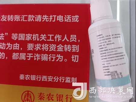 決策熱線|武先生:4月26日上午前往秦農(nóng)銀行長(zhǎng)安區(qū)支行辦理業(yè)務(wù),營(yíng)業(yè)大廳共有9個(gè)業(yè)務(wù)窗口,只有3個(gè)正常辦理個(gè)人業(yè)務(wù),致使多數(shù)人在大廳內(nèi)排隊(duì)等候,隊(duì)伍已排到了營(yíng)業(yè)廳門(mén)口。辦理銀行卡用了近2個(gè)小時(shí),銀行業(yè)務(wù)效率低。隨后發(fā)現(xiàn)窗口擺放的防疫消毒液已過(guò)效期(生產(chǎn)日期:2020.1.30,有效期至:2022.1.29),防疫物資疏于管理。