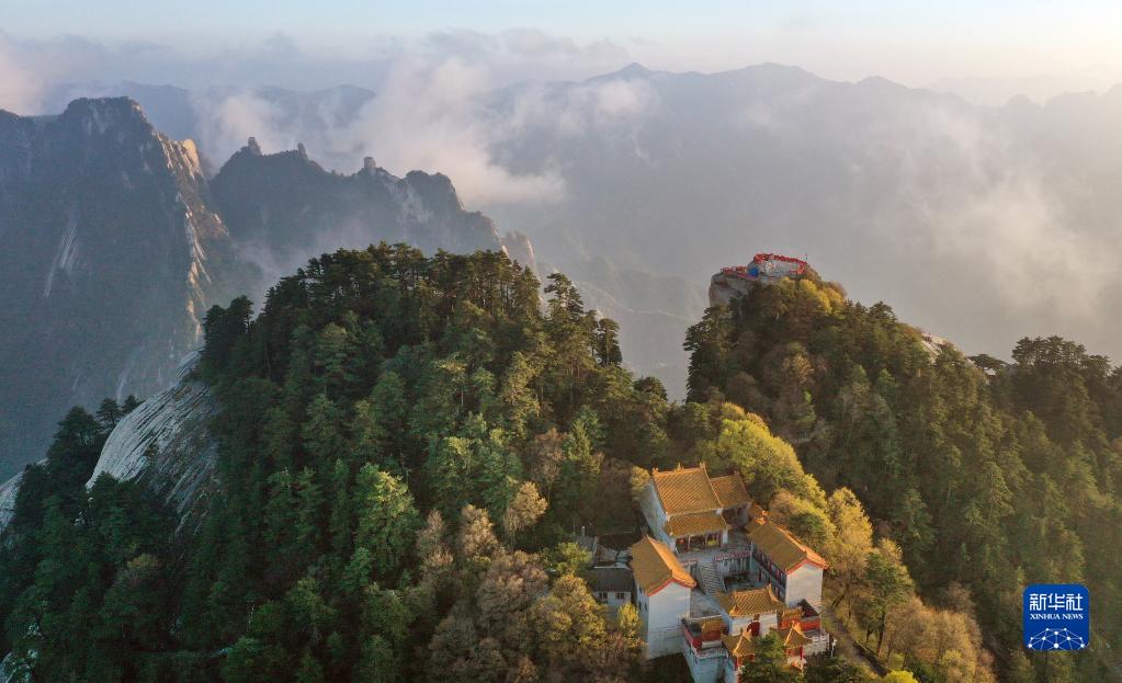 夕陽下的華山(4月28日攝,無人機(jī)照片)。新華社記者陶明攝