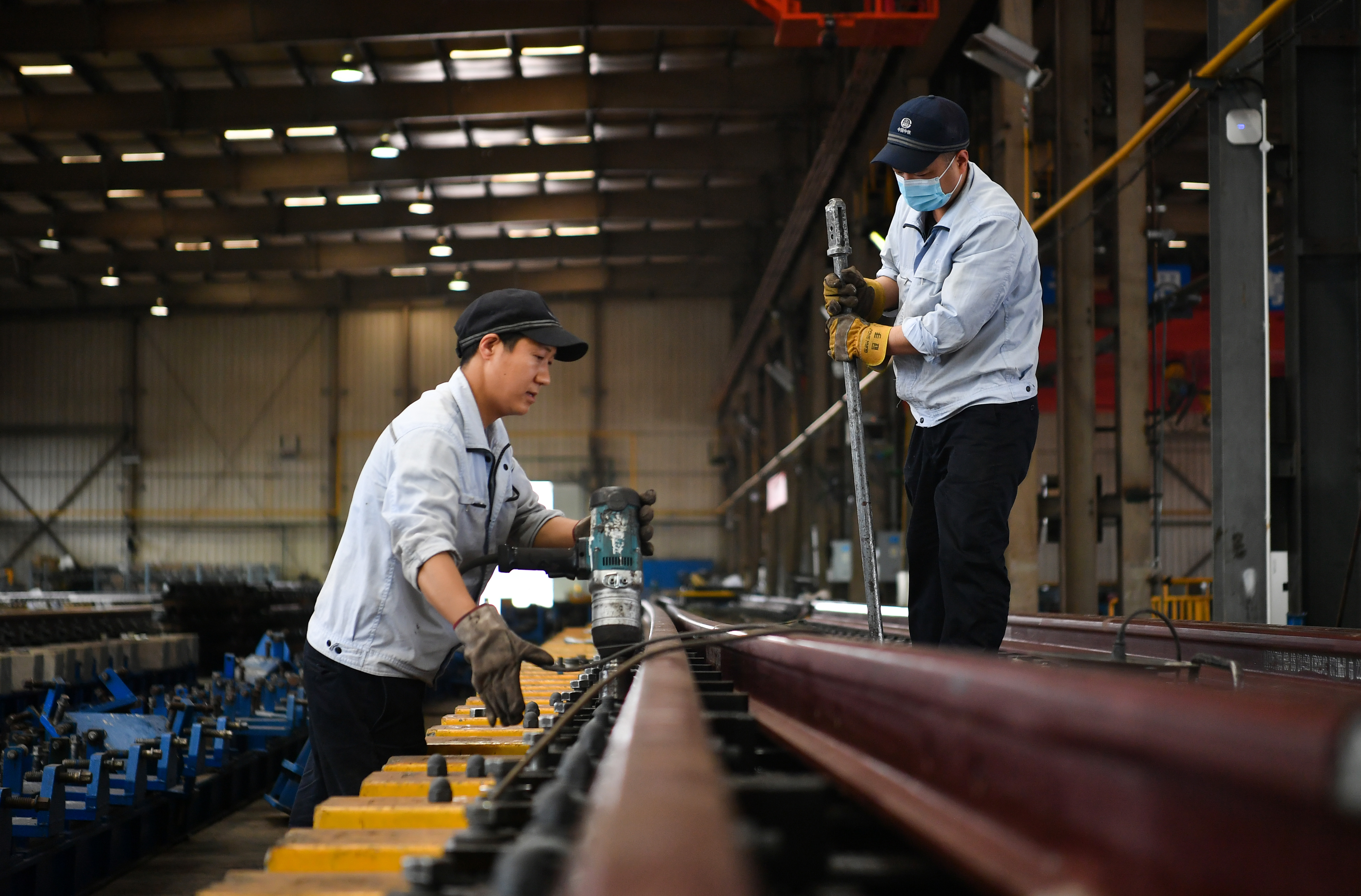 工人在中鐵寶橋集團(tuán)有限公司生產(chǎn)車間工作。新華社記者 張博文 攝