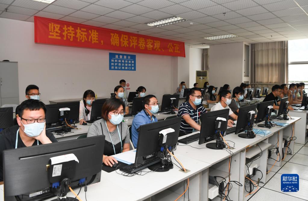 6月14日,在位于吉林長(zhǎng)春的東北師范大學(xué)高考網(wǎng)上評(píng)卷點(diǎn),工作人員在評(píng)卷。新華社記者 張楠 攝