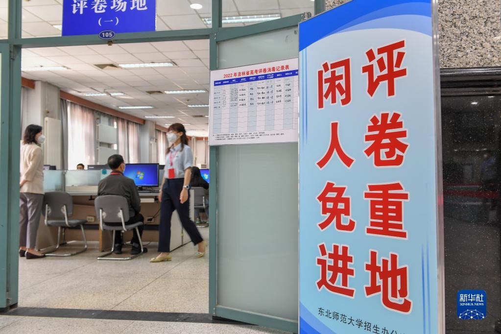 6月14日,評(píng)卷教師在位于西南大學(xué)的重慶市高考評(píng)卷場(chǎng)閱卷。據(jù)了解,2022年重慶市參加全國(guó)統(tǒng)一高考人數(shù)約18.4萬(wàn)人,試卷數(shù)量約110萬(wàn)份,全市統(tǒng)一選派評(píng)卷教師1300余人參加評(píng)卷工作。新華社記者 王全超 攝