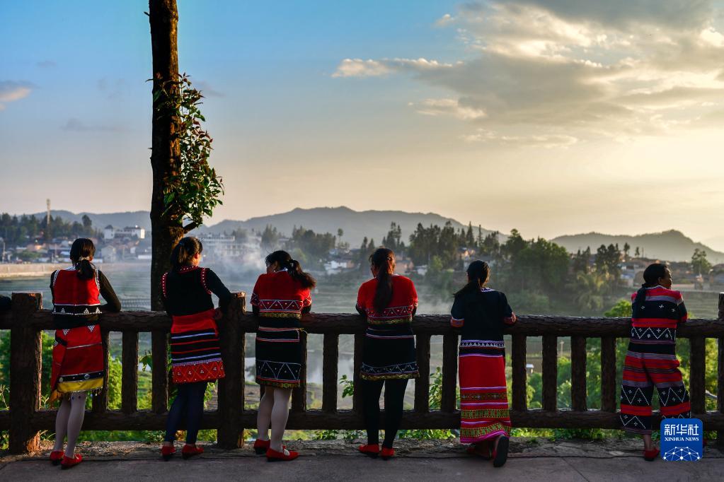 云南省騰沖市清水鄉(xiāng)三家村中寨司莫拉佤族村村民在廣場(chǎng)上休息(2020年5月15日攝)。新華社記者 胡超 攝