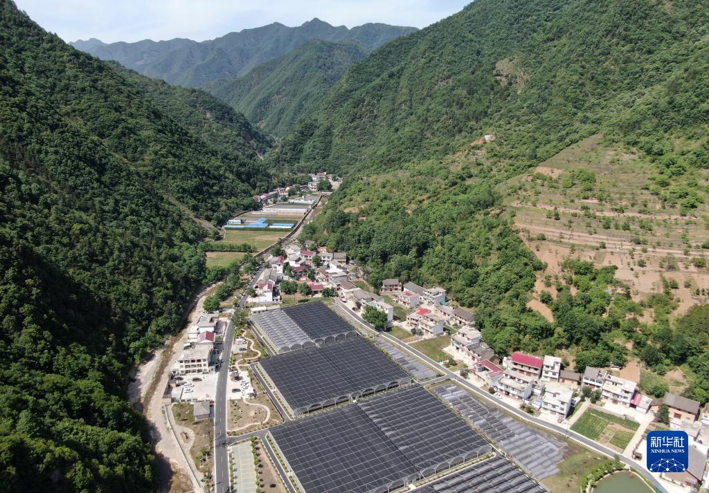 5月30日拍攝的陜西省商洛市柞水縣金米村的木耳大棚(無人機(jī)照片)。 新華社記者 李一博 攝