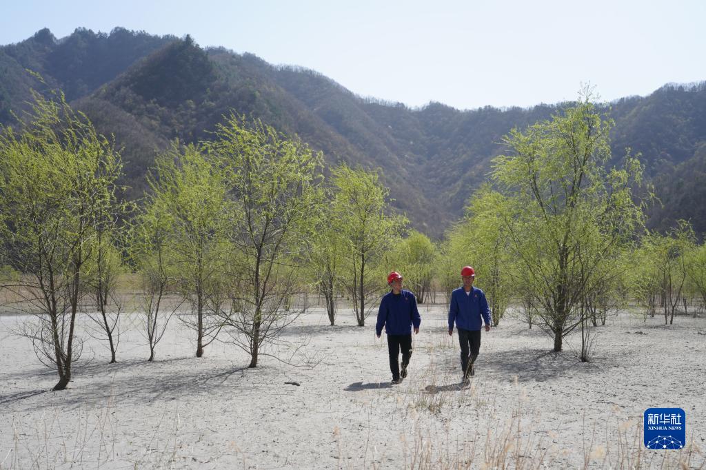 4月7日,金堆城鉬業(yè)集團(tuán)有限公司工作人員在經(jīng)過生態(tài)治理后的木子溝尾礦庫內(nèi)巡查。 新華社記者 邵瑞 攝