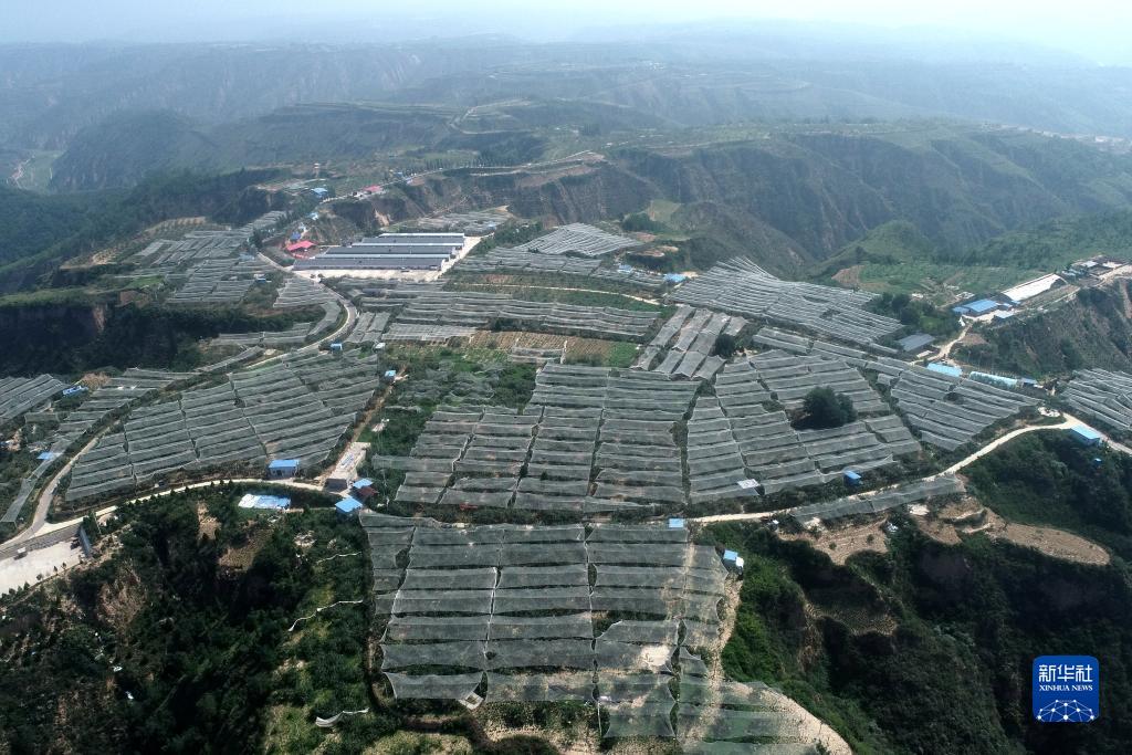 2020年7月29日拍攝的陜西省延安市延川縣梁家河村山地蘋果園(無人機(jī)照片)。 新華社記者 張博文 攝