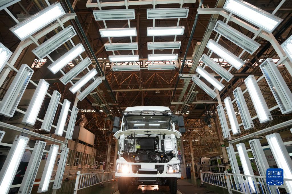 5月24日,在陜西汽車控股集團(tuán)有限公司總裝車間,一輛裝配完畢的陜汽重型卡車等待驗收。 新華社記者 李一博 攝