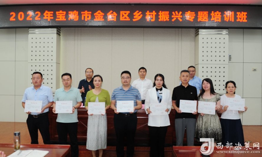 西部決策網訊 8月6日下午,為期三天的“2022年寶雞市金臺區(qū)鄉(xiāng)村振興專題培訓班”結束了!60余學員順利的拿到了結業(yè)證。寶雞文理學院經濟管理學院院長、陜西鄉(xiāng)村振興研究中心主任劉輝;金臺區(qū)政府副區(qū)長郭小軍出席了結業(yè)儀式。參加結業(yè)儀式的還有金臺區(qū)鄉(xiāng)村振興局主要負責人、分管領導,各鎮(zhèn)涉農街道黨(工)委書記和鄉(xiāng)村振興工作分管領導,區(qū)委實施鄉(xiāng)村振興戰(zhàn)略領導小組和區(qū)委抓黨建促鄉(xiāng)村振興領導小組各成員單位分管領導。結業(yè)儀式由金臺區(qū)鄉(xiāng)村振興局局長鄭偉平主持。