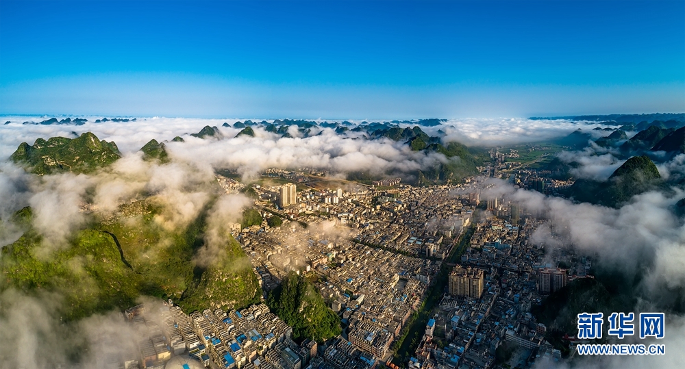 航拍馬山縣城。新華網(wǎng)發(fā) 江海榮攝