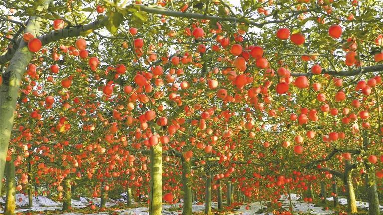 1998年,敢于先試的18戶村民嘗到了種蘋果的甜頭:一畝地收入2000元,是種糧收益的10倍。巨大的收益,點(diǎn)燃了辛戶村人種蘋果的熱情。