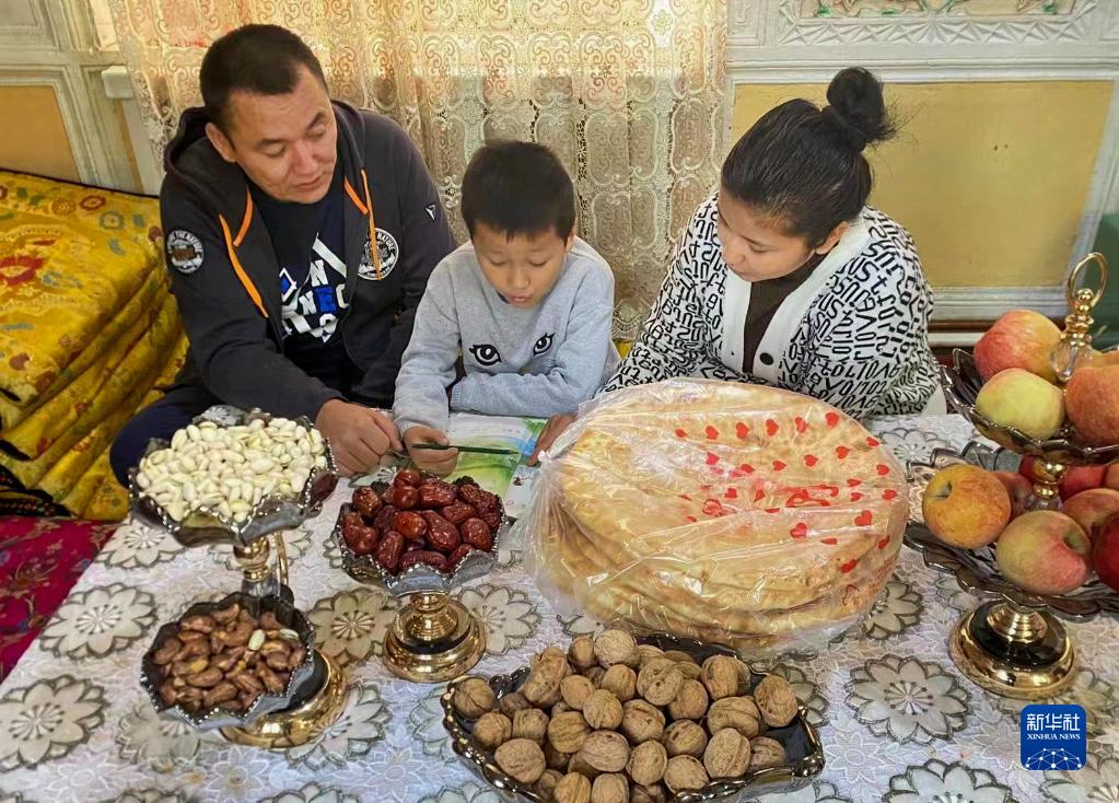 10月16日,新疆喀什古城居民阿依先木姑力·阿布來提(右)在家中輔導孩子功課。新華社發(fā)(唐努爾·玉麥爾 攝)