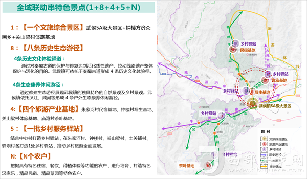 做活三產(chǎn),促進(jìn)三產(chǎn)融合。采用鎮(zhèn)區(qū)—驛道—基地—驛站—農(nóng)戶體系模式,打造1個綜合景區(qū),8條鄉(xiāng)村驛道,4個旅游產(chǎn)業(yè)基地,5個鄉(xiāng)村驛站,N個特色農(nóng)戶。即通過諸葛亮讀書臺、老縣衙恢復(fù)、諸葛文化旅游度假景區(qū)、綜合文化會展中心建設(shè)項(xiàng)目,豐富景區(qū)旅游產(chǎn)品;依托古道,游步道打造8條鄉(xiāng)村驛道;打造武侯鎮(zhèn)朱家河村民宿基地、武侯鎮(zhèn)鐘樓村寫生基地、武侯鎮(zhèn)關(guān)山梁村體旅基地、武侯鎮(zhèn)廟灣茶葉基地;依托長安畫派領(lǐng)軍人物方濟(jì)眾名人效應(yīng),打造鐘樓畫鄉(xiāng)品牌;在中心村結(jié)合村莊公共空間分布情況打造5處鄉(xiāng)村驛站,提供休憩、停車、餐飲等旅游配套服務(wù)。(通訊員:張彬)