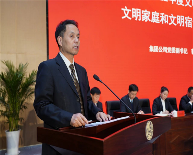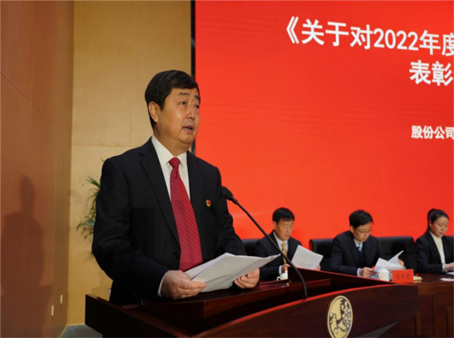 西鳳集團(tuán)公司黨委副書(shū)記郭拴新宣讀《關(guān)于命名表彰公司2022年度文明單位、文明班組、文明家庭和文明宿舍的決定》
