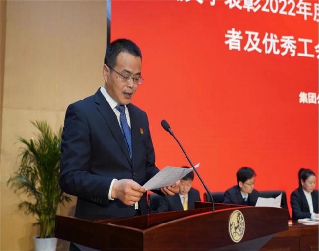 西鳳集團(tuán)公司副總裁楊會(huì)軍宣讀《關(guān)于表彰2022年度先進(jìn)分會(huì)和優(yōu)秀工會(huì)積極分子的決定》