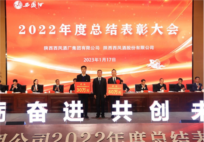 會(huì)上,全體與會(huì)人員共同觀看了《2022年公司發(fā)展成果回顧》視頻。西鳳股份公司副董事長(zhǎng)、總經(jīng)理賈智勇宣讀《關(guān)于對(duì)2022年度先進(jìn)單位、先進(jìn)個(gè)人進(jìn)行表彰獎(jiǎng)勵(lì)的決定》;西鳳集團(tuán)公司黨委副書(shū)記郭拴新宣讀《關(guān)于命名表彰公司2022年度文明單位、文明班組、文明家庭和文明宿舍的決定》;西鳳集團(tuán)公司副總裁楊會(huì)軍宣讀《關(guān)于表彰2022年度先進(jìn)分會(huì)和優(yōu)秀工會(huì)積極分子的決定》;西鳳股份公司副總經(jīng)理師紅勤宣讀《關(guān)于對(duì)“大干四季度 沖刺全年目標(biāo)任務(wù)”競(jìng)賽活動(dòng)獲獎(jiǎng)單位進(jìn)行表彰獎(jiǎng)勵(lì)的決定》。公司領(lǐng)導(dǎo)為受表彰的先進(jìn)單位和個(gè)人頒發(fā)了獎(jiǎng)牌和榮譽(yù)證書(shū)。