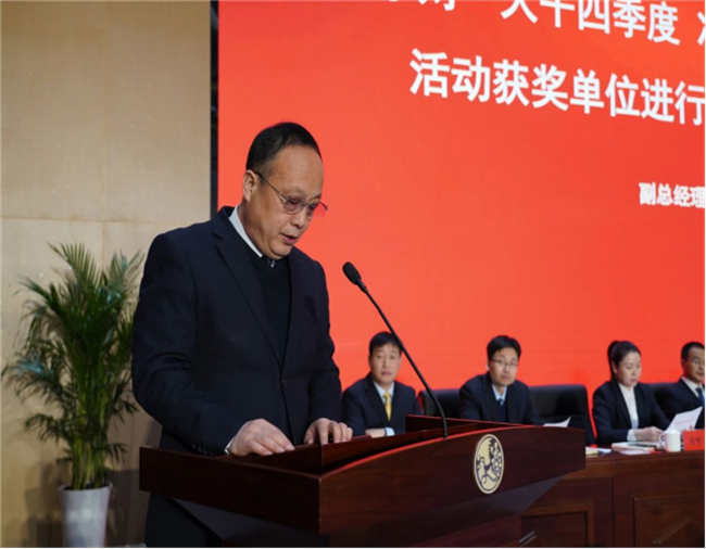 西鳳股份公司副董事長(zhǎng)、總經(jīng)理賈智勇宣讀《關(guān)于對(duì)2022年度先進(jìn)單位、先進(jìn)個(gè)人進(jìn)行表彰獎(jiǎng)勵(lì)的決定》