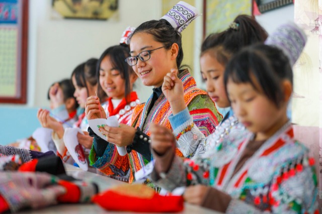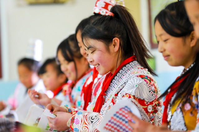 近年來,貴州省黔西市新仁苗族鄉(xiāng)折溪小學(xué)積極推動優(yōu)秀非遺文化進課堂,選任學(xué)校精通刺繡、蠟畫、蠟染的教師指導(dǎo)學(xué)生學(xué)習(xí),讓苗族孩子們“零距離”接觸非遺技藝,弘揚和傳承民族優(yōu)秀傳統(tǒng)文化。中國教育報-中國教育新聞網(wǎng)通訊員 周訓(xùn)超 攝
