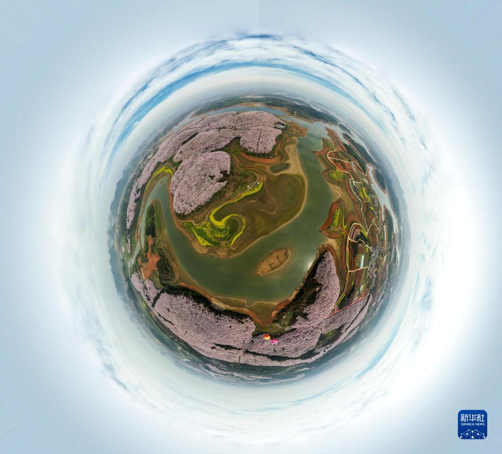 這是3月21日拍攝的貴州省貴安新區(qū)櫻花園(無人機全景照片)。新華社記者 楊文斌 攝