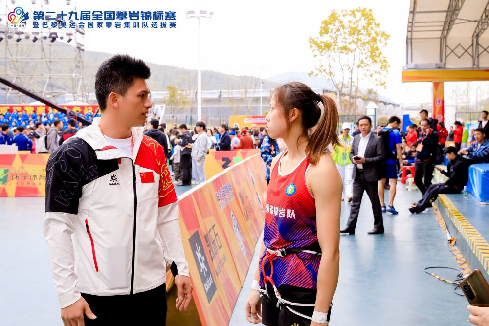 采訪最后,鐘齊鑫也表達(dá)了帶隊(duì)回到家鄉(xiāng)比賽的感慨。全南縣是他出生、成長的地方。現(xiàn)在,拿過世界冠軍也帶出過世界冠軍的他,已經(jīng)成了家鄉(xiāng)的“紅人”。19日,當(dāng)他和自己的冠軍弟子們出現(xiàn)在賽場,現(xiàn)場觀眾的人數(shù)達(dá)到了開賽幾日來的最高峰。男子決賽進(jìn)入白熱化階段時(shí),現(xiàn)場掀起一波又一波“破五”的吶喊聲浪,贛南小城的觀眾們希望在家門口見證人類極限的突破。