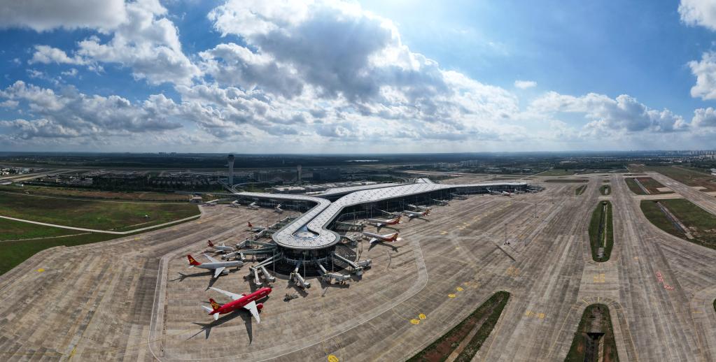 這是2021年11月20日拍攝的??诿捞m國際機場二期項目(無人機照片)。新華社記者 楊冠宇 攝