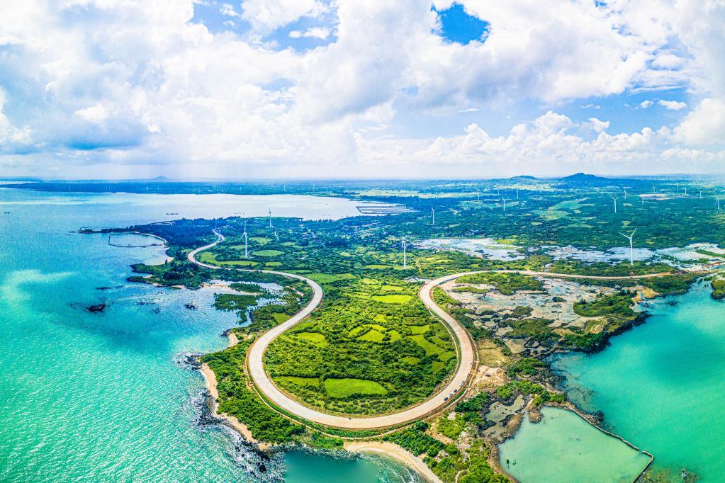 這是2022年10月6日在海南儋州峨蔓火山海岸拍攝的海南環(huán)島旅游公路(無人機照片)。新華社記者 蒲曉旭 攝