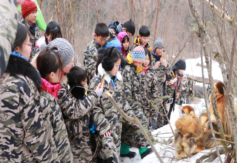 學生研學走進神農(nóng)架國家公園大龍?zhí)督鸾z猴基地(神農(nóng)架國家公園管理局供圖)