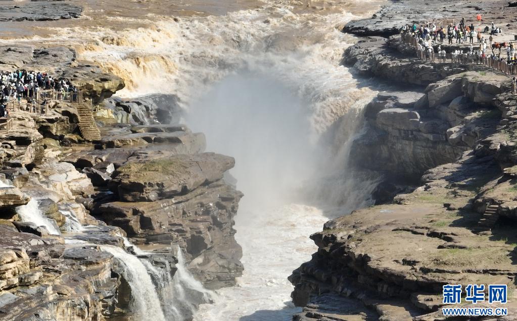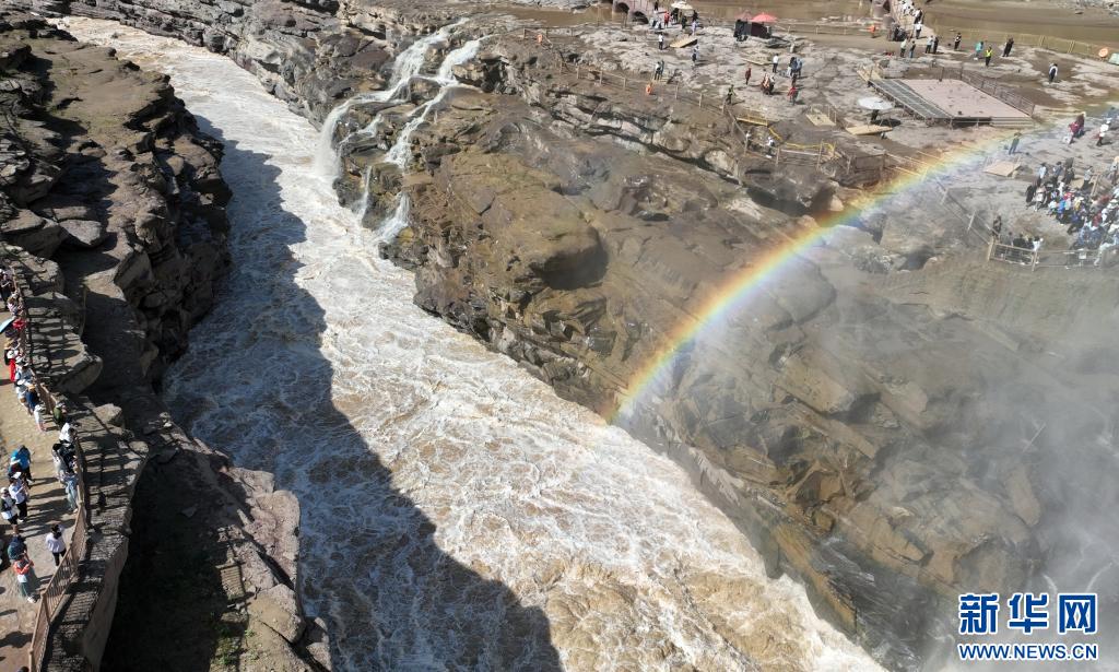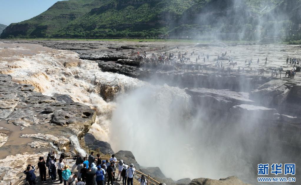 暑期,眾多游客來(lái)到位于陜西宜川縣和山西吉縣交界處的黃河壺口瀑布游覽,領(lǐng)略壺口瀑布美景。
