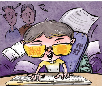 可好景不長,“雙雙”因?yàn)榇蛴螒驎r(shí)間過長,學(xué)習(xí)成績一塌糊涂,經(jīng)常被老師拉去單獨(dú)談話。但她對老師的批評左耳朵進(jìn)右耳朵出,回家后仍是將書包一扔,熟練地啟動電腦開始打游戲。