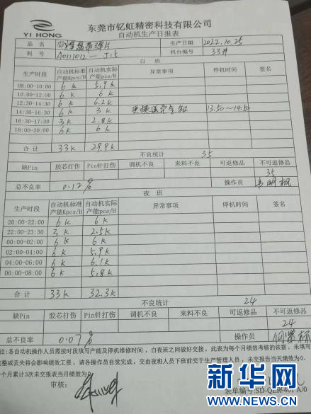工人過去用紙質(zhì)表格,記錄生產(chǎn)情況。新華網(wǎng)發(fā)(企業(yè)供圖)