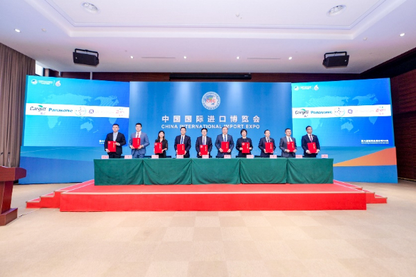 拜耳中國公共與政府事務(wù)及可持續(xù)發(fā)展副總裁高勇博士(左五)代表拜耳提前簽約第七屆進(jìn)博會