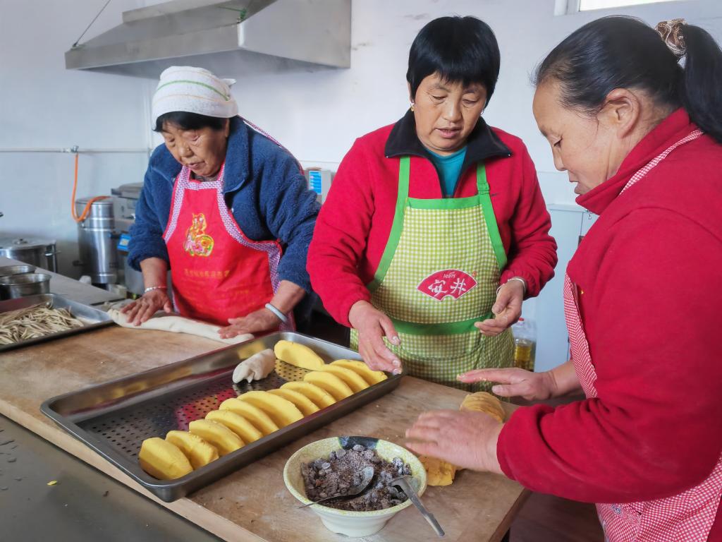 2023年11月14日,馬家峪村老年餐廳養(yǎng)老護理員在準備晚餐。新華社記者魏飚 攝