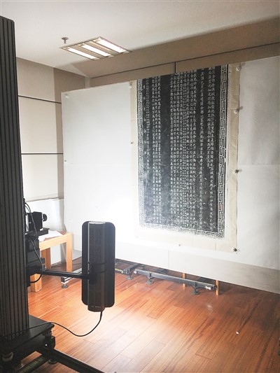 對石刻拓片進行古籍數(shù)字化拍攝。中國國家圖書館供圖
