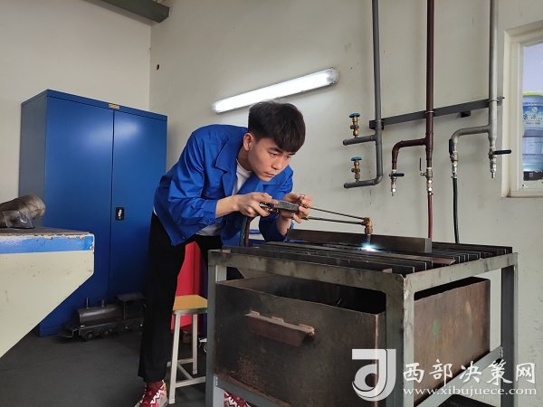 見到黨金鑫時,他正在實訓車間緊張忙碌地備戰(zhàn)著第二屆全國職業(yè)技能大賽(世賽選拔賽),作為助教,他還同時肩負著帶領學生、傳授經驗的任務。可能連他自己都沒想到,在這所實訓車間內,他能將自己的才華施展得淋漓盡致,靠著一門技術實現了“一飛沖天”。